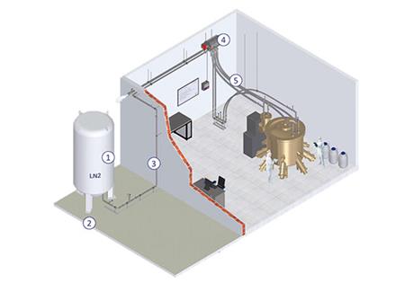 整套系統配套有通風系統,以保證冷凍罐內維持微負壓,防止氮氣逸出到周圍環境中。
